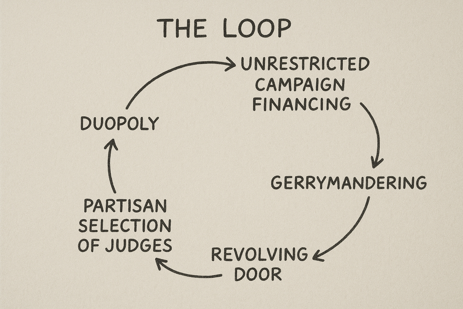 When we look at the Loop we see the manifestation of the warnings that Hamilton, Madison and Jay wrote about in the Federalist papers. The executive, legislative, and judicial branches have all been infected by the vast sums of money flowing both into and out of the political system.